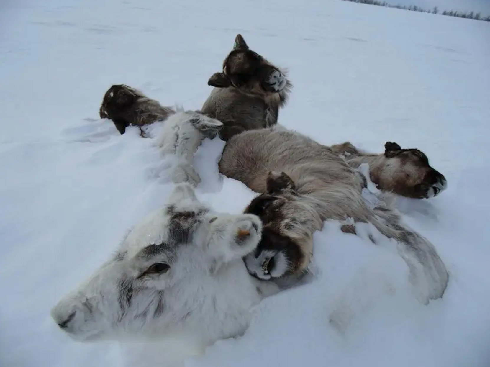 In recent decades, rain-on-snow events have, by inhibiting foraging, led to starvation in tens of thousands of reindeer, caribou, and musk oxen. In October 2003, some 20,000 Banks Island musk oxen starved after a rain on snow event. In the Novembers of 2006 and 2013, an estimated 80,000 reindeer starved across the Arctic due to rain on snow events. Not only do these herbivores die, so do the predators that prey on them. High-latitude herders who rely on these animals face dire threats to their livelihoods. The mass mortality events may sound like someone else’s problem, and the Arctic may seem only remotely relevant to those of us living in the midlatitudes, but the region is part of a unified Earth system. The snow and ice in the polar regions act as the planet’s built-in air conditioning systems. With one of those systems failing, the planet overall might be accumulating more heat.